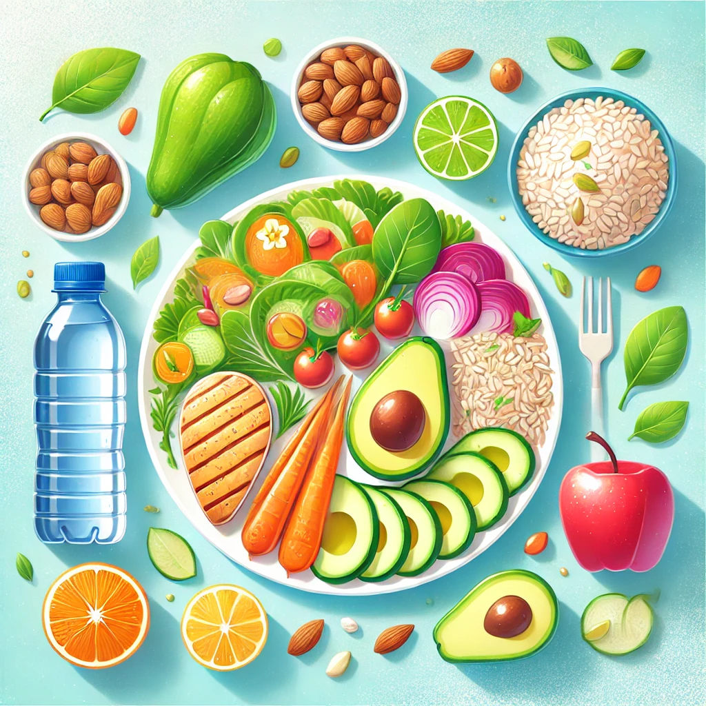 식이섬유는 포만감을 높이고 소화를 돕는 역할을 한다. 특히 야채와 과일을 충분히 섭취하면 장 건강에도 좋다. 또한, 하루 2L 이상의 물을 마시는 것도 중요하다.