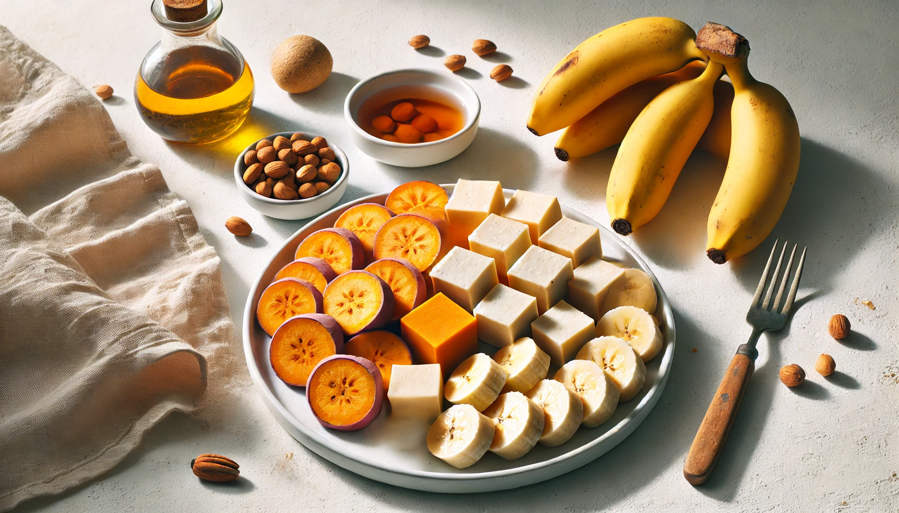 복합 탄수화물로 구성되어 천천히 소화되어 혈당 상승이 완만하고, 식이섬유가 풍부해 장 건강에도 좋습니다. 삶거나 찐 고구마로 먹는 것이 이상적입니다. - 두부 스낵 또는 생두부